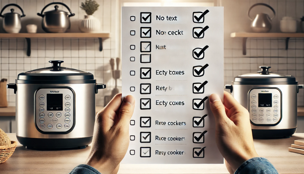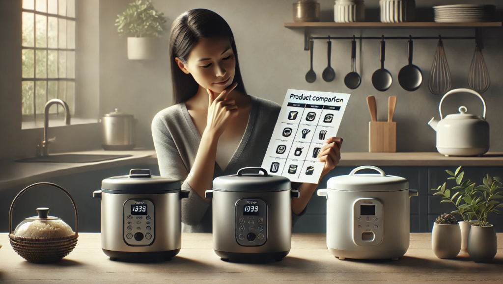 比較は、炊き上がり、操作性、コスト、安心感という4つの軸で行います。