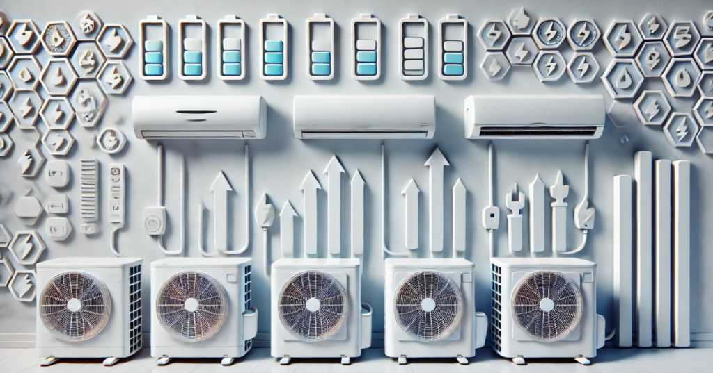 モデルが上がるにつれて冷暖房能力・消費電力量・価格が段階的に上昇する設計で、非常に分かりやすいラインナップ構成となっています。