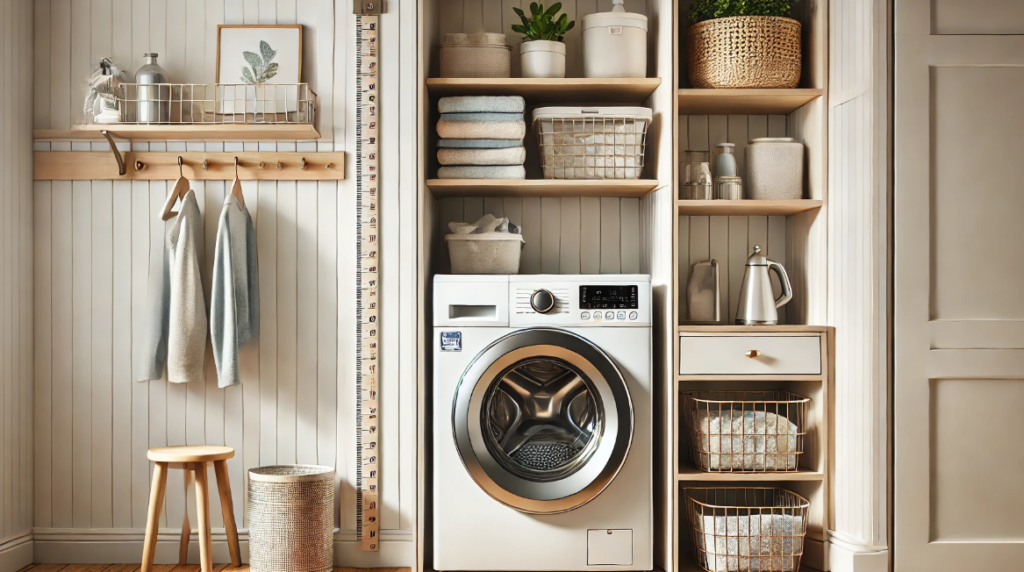 上部に棚がある場合は高さ制限にも注意し、給水栓やホースの取り回しスペースも考慮します。